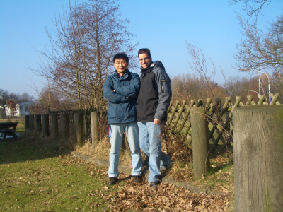 Lo que más me gusta de estar en este grupo es que tengo gente con la que poder hablar y charlar sobre robótica, y comentar los problemas y dificultades con los que me encuentro en mis investigaciones. En la foto de la derecha estamos Houxiang y yo, intentando poner un poco de orden a las ideas que tenemos. Os puedo asegurar que inicialmente la pizarra estaba limpia... Recuerdo un profesor de filosofía que tuve en COU que decía que las ideas escritas en una pizarra o un papel son un fiel reflejo de cómo las tenemos en nuestra cabeza. Totalmente acertado. Esa pizarra caótica es la confirmación :-)