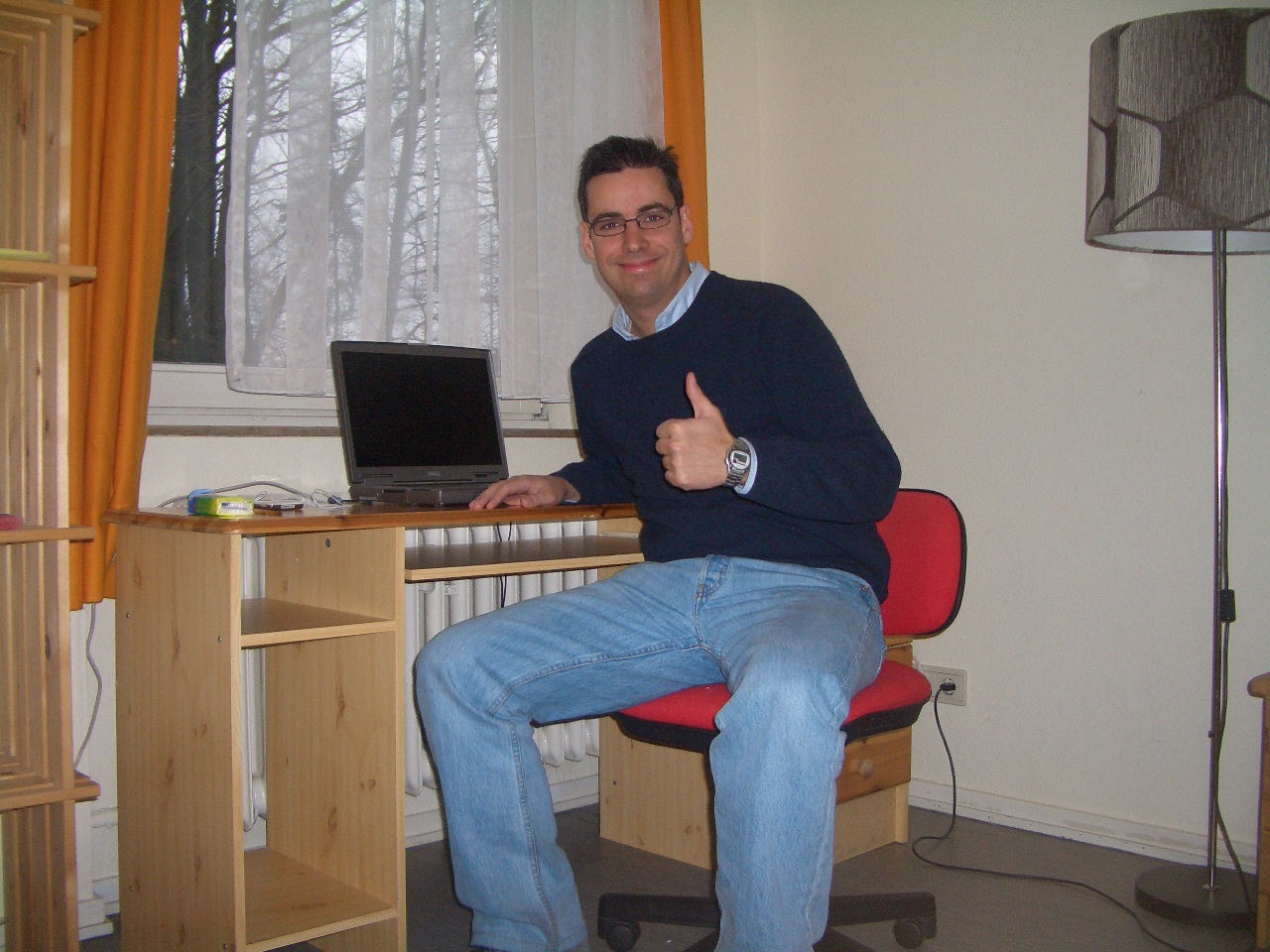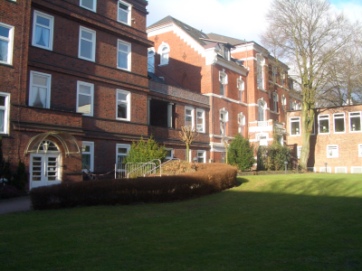 Estoy alojado en una residencia de estudiantes de post-grado de la Universidad de Hamburgo, situada en la calle Martinistraße 41-49, (20251 Hamburg). Es un micro-campus que pertenece a un Hospital. Uno de los edificios está destinado a los estudiantes de Post-grado que vienen de fuera (Foto de la izquierda). En la derecha estoy yo en mi habitación. Tengo una cama, una mesa, un armario, un lavabo y lo más importante... conexión a internet :-)