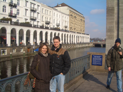 Ese sábado lo dedicamos a hacer turismo por Hamburgo. El mismo recorrido que me había enseñado Houxiang dos semanas antes :-). En la derecha están Andrés y Susana en uno de los canales de Hamburgo. Hacía mucho frío, pero al menos había sol.