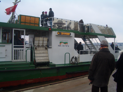 En domingo, después de estar antes en otros sitios, decidimos tomar unos de los barcos-autobús que hay en Hamburgo. (foto de la izquierda). Es un transporte público más. En la derecha estoy yo en la parte superior del barco.... Hacía un frío!!!!!
