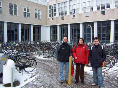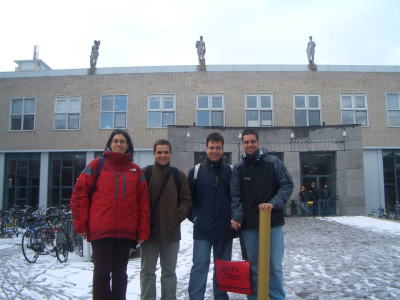 Mientras Javi y Eduardo preparaban la charla (foto de la izquierda), los demás decidimos dar una vuelta por el campus de la universidad de Delft (Foto de la derecha).