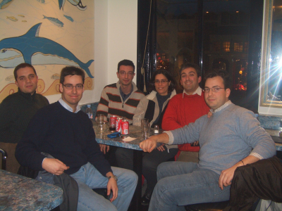 Salí desde Hamburgo el martes 28 de Febrero. Me alojé en el hotel Coen Delft, que está en la parte trasera de la estación central. Llegué al hotel sobre las 17h. Después de dejar la maleta y descansar un rato, sobre las 19h salí a dar una vuelta por Delf para cenar. Me fuí hacia la zona centro y me metí en uno de los primeros sitios que encontré: un restaurante griego, donde había hamburguesas y el equivalente a los kebabs pero en Griego ;-). Al cabo de un rato entró un grupo de 5 personas y una de ellas me dijo: “¡Anda! !Tú eres el del gusano robot¡”. Era Rodrigo Agís, del departamento de arquitectura y tecnología de computadores (ATC) de la Universidad de Granada. Nos habíamos conocido en el JCRA2004, en Barcelona. Ellos habían venido también para asistir al ARC2006, así que nos pusimos en la misma mesa. (foto de la izquierda). De izquierda a derecha: Rafael Rodríguez, yo, Eduardo Ros, Sonia Mota, Javier Díaz y Rodrigo Agís.