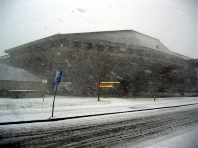 Al día siguiente comenzaba el congreso. Y como se puede ver en la foto de la derecha, el tiempo no era muy bueno que digamos. Nos cayó una nevada impresionante!!