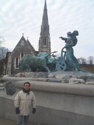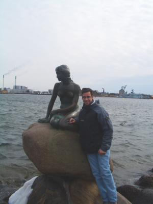 El sábado por la mañana estuvimos haciendo un poco de turismo. Vimos la zona centro y por supuesto la sirenita ;-) En la foto de la izquierda está Javi posando delante de la fuente en frente del museo de la II guerra mundial. Aquí no las ponen en marcha hasta el verano, porque se congelan.