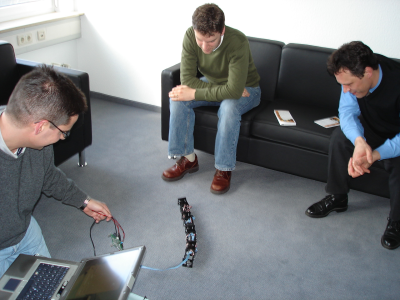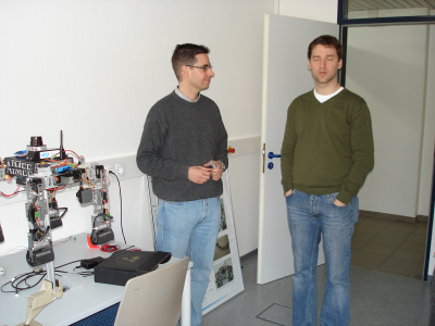 El martes 4 de Abril, comenzamos la visita en el grupo de robótica de la Universidad de Bremen. Durante nuestra asistencia al congreso Clawar 2005, habíamos conocido a Dirk Spenneberg, Martin Albrecht y Till Backhaus. Alejandro Alonso se puso en contacto con Dirk para ir a hacerles una visita y muy amablemente accedió. Allí estaba también trabajando Jose de Gea Fernandez, que se puso en contacto con nosotros y estuvo todo el rato pendiente. Nos sentimos como en casa :-)