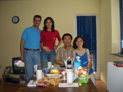 Esa noche, en Delft, tuvimos una cena muy “especial” ;-). Al día siguiente, nos volvimos a Hamburgo en tren y cenamos con Houxiang, Yanran, Lu y su novio. En la foto de la derecha estamos los cuatro, antes de irnos al restaurante.