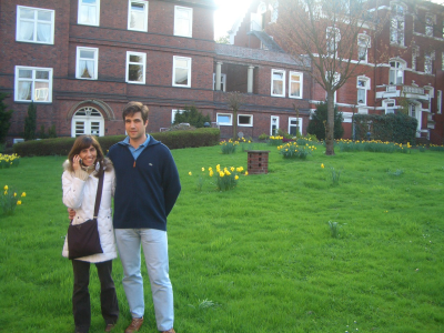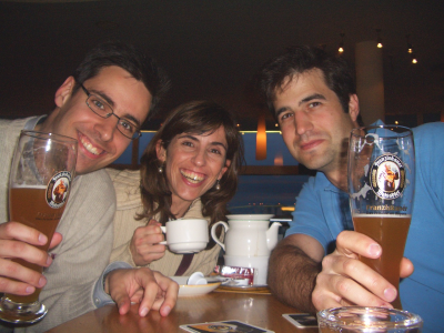 El 28 de abril vinieron Carlos y Virginia a visitarme. Sí, el mes de abril fue socialmente muy activo. En la foto de la izquierda están Virginia y Carlos en el jardín de mi residencia. Y en la derecha estamos tomando unas cervecitas ;-)