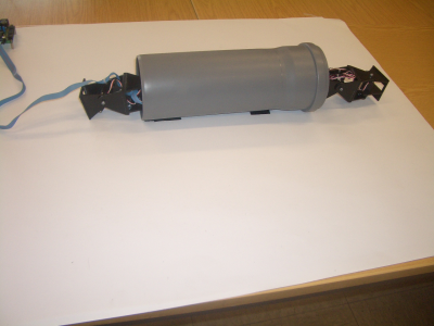 En la foto de la izquierda el robot se está moviendo en línea recta para atravesar un tubo. En la derecha está pasando por un segmento acodado.