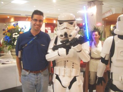 A las 15h nos fuimos a recoger al aeropuerto a Jose Pichardo, que venía desde Cádiz. En la foto de la izquierda estamos de derecha a izquierda Jose, Iván y yo. Tenía muchas de volverme a encontrar con Jose. No nos veíamos desde la II Semana de la ciencia y la tecnología celebrada en Cádiz en Noviembre del 2005.