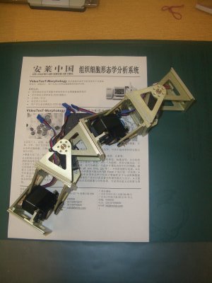 Y por último no podía faltar una configuración de robot ápodo realizada con los módulos ZG (foto de la izquierda), basados en los módulos Y1, que diseñamos durante mi estancia en Hamburgo y que fueron fabricados en China. Houxiang tiene 5 módulos y yo otros cinco. Estos son los módulos que emplearé para dar talleres de robótica modular cuando termine mi tesis doctoral. Serán los primeros talleres de este tipo impartidos en España (y posiblemente en Europa).