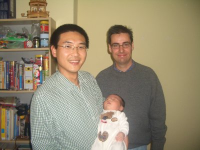 Pero la visita no fue sólo técnica. Principalmente fuimos Mercedes y yo para ver a su hijo recién nacido. En la foto de la izquierda estamos Mercedes, Yanran, Alexander (el bebé) y yo. En la foto de la derecha estamos Houxiang, Alexander y yo. Desde antes de su nacimiento pasé a ser “uncle Juan”, el tío Español de Alexander ;-)