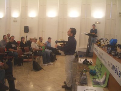 Después de comer, Jose Ignacio Bermejo y Jonatan Segurana, de la E.T.S.I.I de la UNED, nos hablaron sobre los talleres de robótica que han empezado a organizar en su universidad y pusieron a disposición de A.R.D.E toda la documentación.