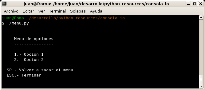 Para probarlo descomprimir el fichero pyconsola_io.zip en el directorio de trabajo y ejecutar: