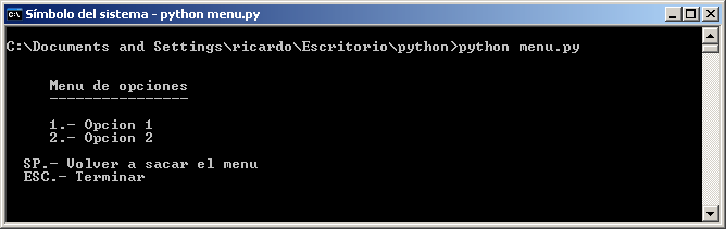 El siguiente ejemplo muestra cómo hacer un menú con 2 opciones: