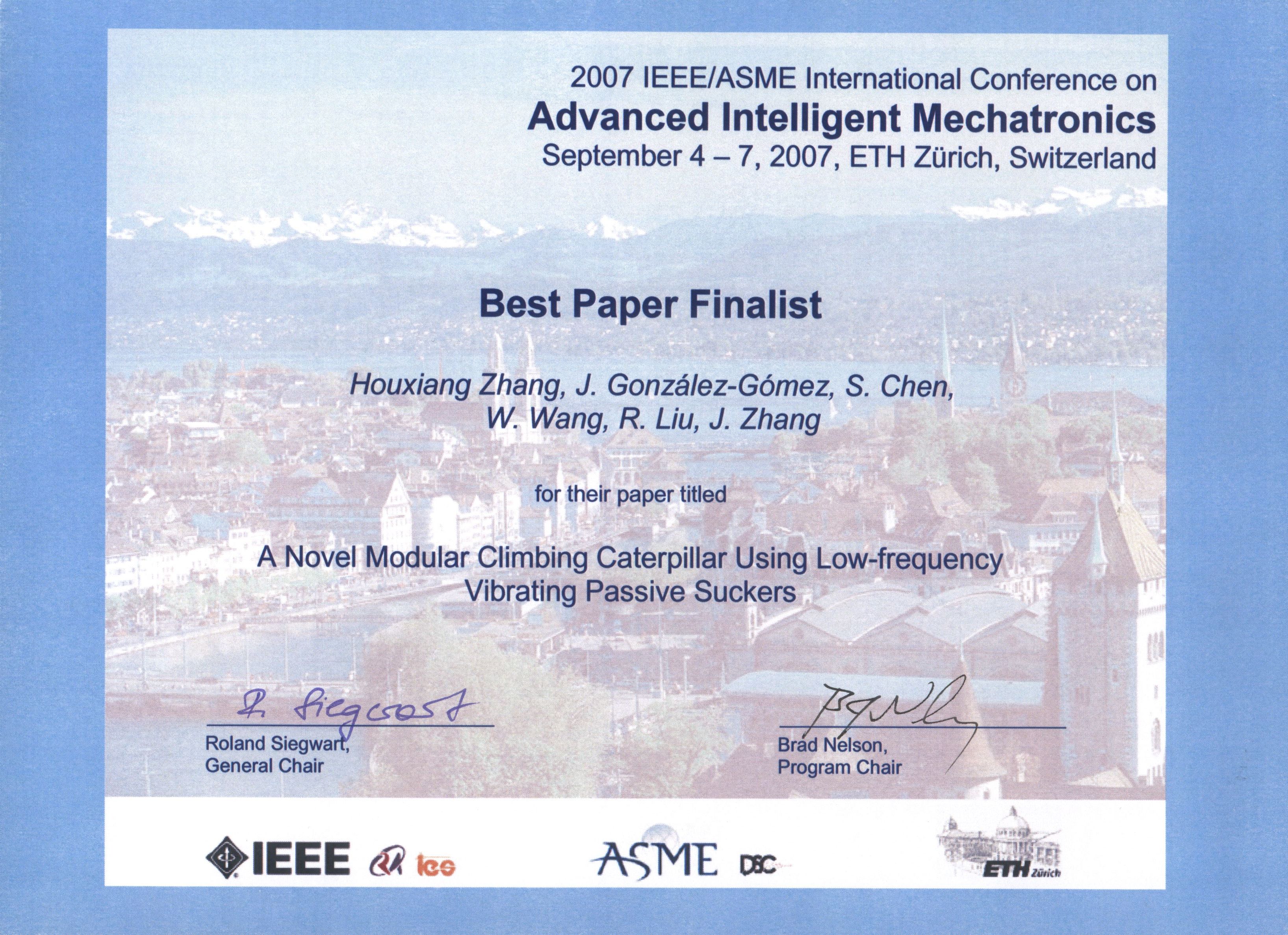 Paper 15: ”A Novel Modular Climbing Caterpillar Using Low-frequency Vibrating Passive Suckers” |