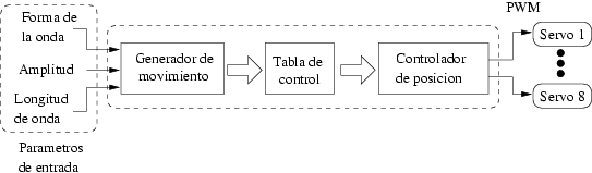 El generador de movimiento obtiene la tabla de control a partir de los parámetros de entrada (forma de onda, amplitud y longitud de onda). Se implementa por software, según el algoritmo descrito en el apartado 3.2.