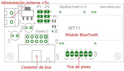 de señales de datos como alimentación, ya que la skyBlueTooth tiene un conversor DC-DC integrado para alimentar el módulo BlueTooth.