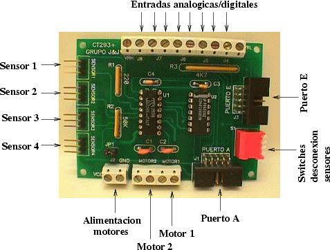 | PA4: Motor 2, ON/OFF | PE4: Entrada analógica/digital 5 |