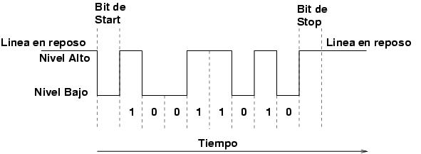 En esta figura se puede ver un ejemplo de la transmisión del dato binario 10011010. La línea en reposo está a nivel alto: