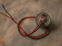 Paso 7. Antes de volver a colocar el motor en su sitio se deben soldar dos cablecillos en sus bornas de alimentación. Se recomienda usar un cable rojo y otro negro, el primero se soldará a la borna positiva (la que tiene el punto rojo) y el segundo a la negativa. La diferenciación no importa en el caso de microbots móviles, pero en aplicaciones que impliquen un solo sentido de giro del motor sí. Conviene hacer coincidir la polaridad de la fuente de alimentación con la del motor, de esa forma la vida útil del mismo será mayor. |