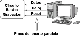 Un ordenador PC, que utilice 3 pines del puerto paralelo para las señales de datos, reloj y reset. En este caso es el software en el PC el que debe implementar el protocolo ICSP