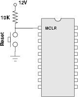 En vez de utilizarse un pulsador para hacer reset, se utiliza un transistor PNP. Cuando la señal de reset se pone a '1', el transistor se satura y entran 0v (aprox) por la pata MCLR. Cuando reset está a '0', el transistor está al corte y por MCLR entran 12v (aprox). En vez de un pulsador manual, ahora tenemos un pulsador electrónico, que se abre y cierra en función del valor de la señal reset.