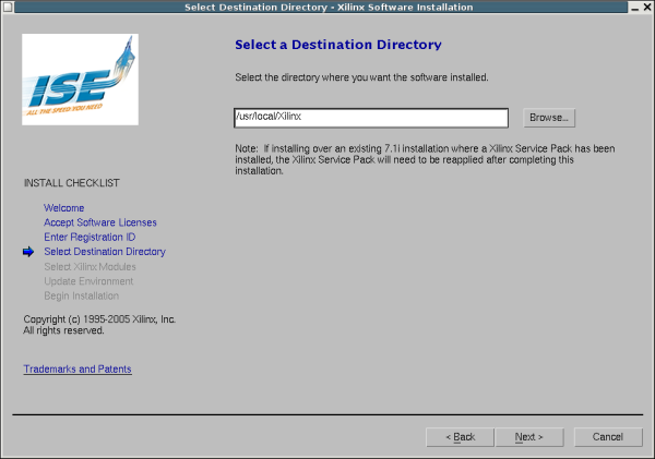 Seleccionar el directorio donde instalar el ISE. Yo lo pondré en /usr/local/Xilinx
