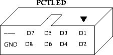 La PCT-LED dispone de un conector acodado de 10 pines. En la siguiente foto se muestra la asignación de cada uno de estos pines. Donde Dx hace referencia al Diodo led x, marcado en la serigrafía de la placa.