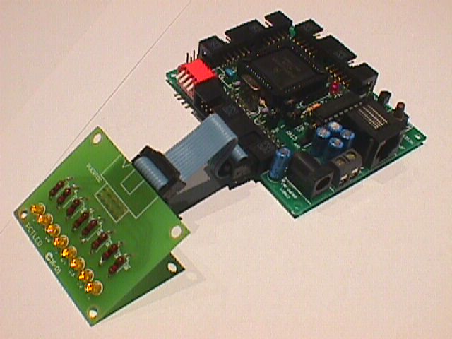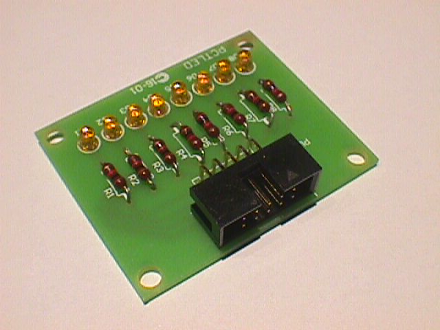Tarjeta de prueba con 8 leds y conector para cable de tipo bus, para ser conectada a diferentes placas entrenadoras, aunque fue diseñada inicialmente para conectarse al puerto C de la tarjeta CT6811.