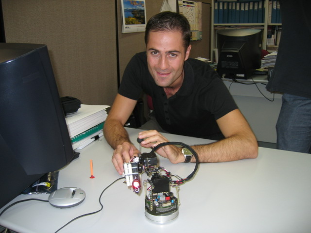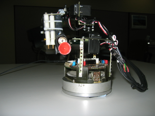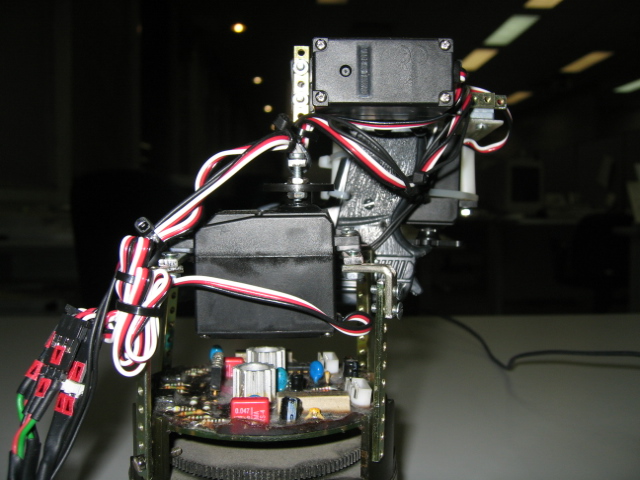 otro para disparar mediante la técnica llamada "aprieta el gatillo" . Para mover la plataforma se utiliza un joystick hecho con dos potenciómetros, para apuntar y disparar dos botones. El cerebro de la máquina es un microcontrolador PIC16F876.