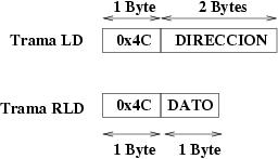 El cliente envía la trama LD en la que especifica el código de la trama y la dirección de la que se quiere leer. Primero se envía el byte menos significativo y luego el más significativo. El servidor responde con la trama RLD, que tiene un código de identificación y el dato solicitado: