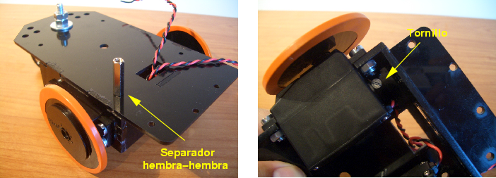 Paso 1. Colocar un separador hembra-hembra en la posición indicada en la figura. Poner el tornillo por la parte interior.