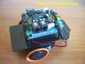 Paso 4.Para alimentar el robot introducir el jack macho del portapilas en el jack hembra de la Skypic.