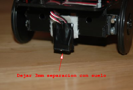 Paso 7. Poner el portapilas, colocar la rueda y ajustar la altura de los sensores para que están a 0.3cm del suelo aproximadamente.