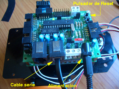 3. Que esta conectado el cable serie al conector telefónico marcado como PC (el de la derecha junto a la clema de alimentación).