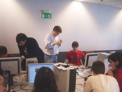 Al taller no sólo asisten alumnos, sino también profesores que tengan ganas de “cacharrear”. En la foto de la izquierda está Miguel Ángel García y en la foto de la derecha Francisco de Borja Rodríguez, David Rozado y Fernando Herrero, del grupo de Neurocomputación Biológica (GNB).