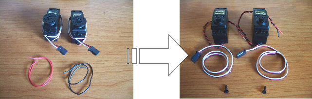 Los elementos que emplearemos son los dos servos y 25 cm de cable negro y rojo