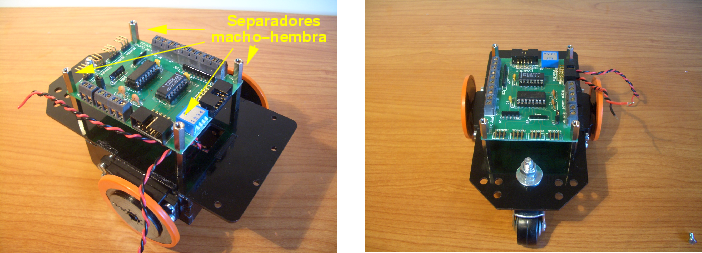 Montaremos la etapa de potencia (tarjeta SKY293) sobre la estrucutra y conectaremos los motores.