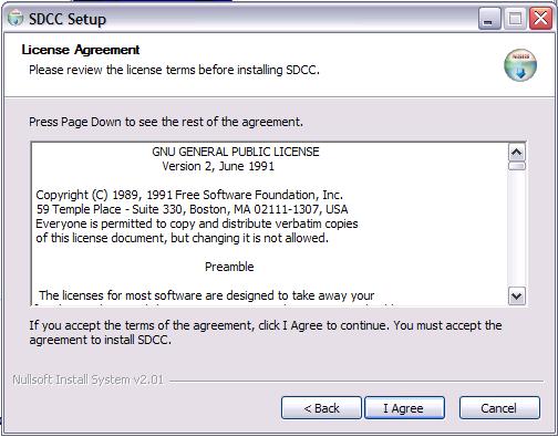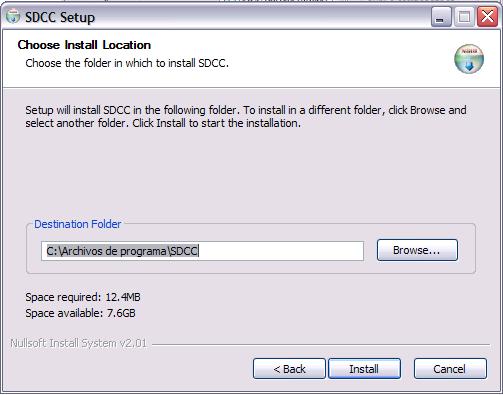 Para comenzar la instalación ejecutaremos el archivo SDCC-2.5.0SETUP.EXE, desde la ubiación donde lo hayais descargado, con lo que se nos abrirá la siguiente ventana: