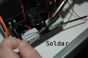 | Paso 7) Unimos el conector 2 de ambos bumpers. Para ello soldamos los conectores. |