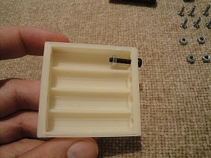 - 08/Dic/2011: Obijuan probó la idea de utilizar tuercas empotradas para hacer las conexiones eléctricas. Experimento con este portapilas sencillo de 1 pila. La idea funcionó y gustó. La publicaron en esta entrada del blog de makerbot