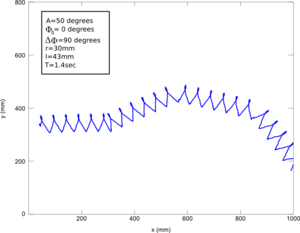 | + | | [[Archivo:Limited-wheels-figure-9.png|thumb|300px|center|'''Figure 9''': Graphical representation of the step and direction using the maximum amplitude. When gamma is increased, the step is smaller]] | ||