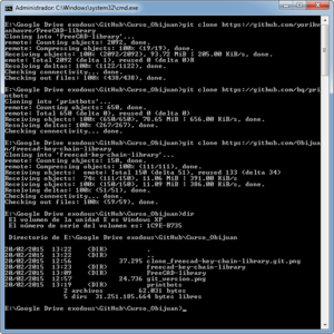 Ejecutando git clone en la terminal de windows. Gracias a Juanma Roldan Gomez (Exodous) (click para ampliar)