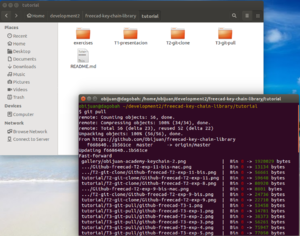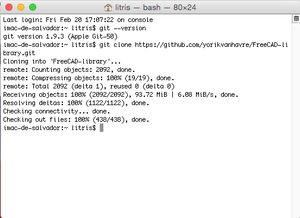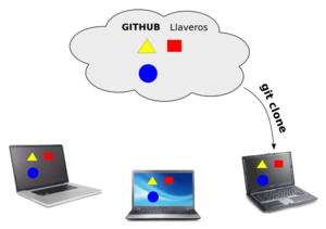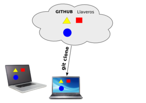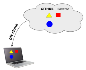 El repositorio de los llaveros de freecad está en el github (que está en la nube). Cualquiera se lo puede "clonar" para tener una copia local en su ordenador. Esto se hace con el comando git clone. Este comando sólo se ejecuta una vez, para crear la copia del repositorio.