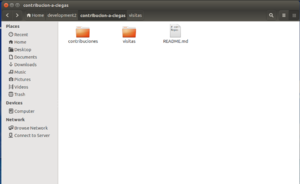 Creamos dos carpetas, llamadas contribuciones y visitas. En cada una de ellas creamos un fichero README.md. En el de contribuciones ponemos: