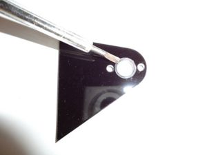 Corona del servo con los taladros de 3mm hechos (Click para ampliar)