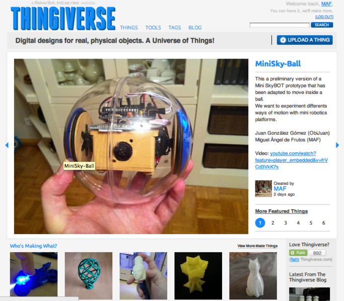 Revisión del 09:10 10 jun 2012 de MAF (Discusión | contribuciones) (SkyBall es "Featured" en Thingiverse.)