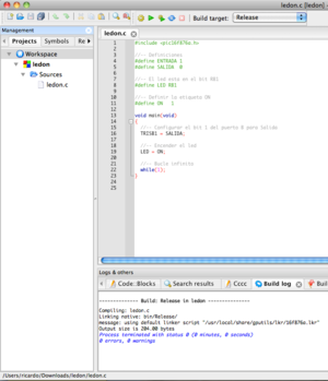 En este tutorial se muestra cómo configurar el entorno code::blocks para programar los microcontroladores PIC en lenguaje C. El code::blocks es libre y multiplataforma (Linux, Mac, Windows) por lo que permite la programación con independencia del sistema operativo empleado.