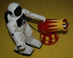 En esta charla se ha querido mostrar como trucar unos simple jugetes añadiéndoles una electrónica simple para menejarlos desde un PC mediante su conexión serie con el sistema operativo Windows XP. Los dos ejemplos han sido manejar un pequeño cañón en sus ejes, disparar los proyectiles y mover un pequeño humanoide mediante sus dos motores situados en los pies.