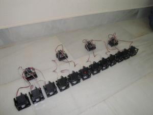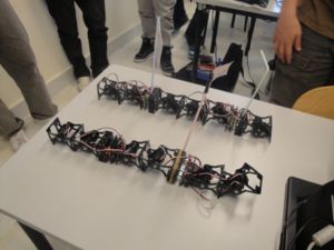 En la parte de experimentos sólo dió tiempo ha construir robots con movimiento de 1D. Sin embargo, el objetivo de batir el record de España se cumplió: Hicimos un gusano de 12 módulos que se movía de forma autónoma. Hasta el momento es el más largo de España ;-)